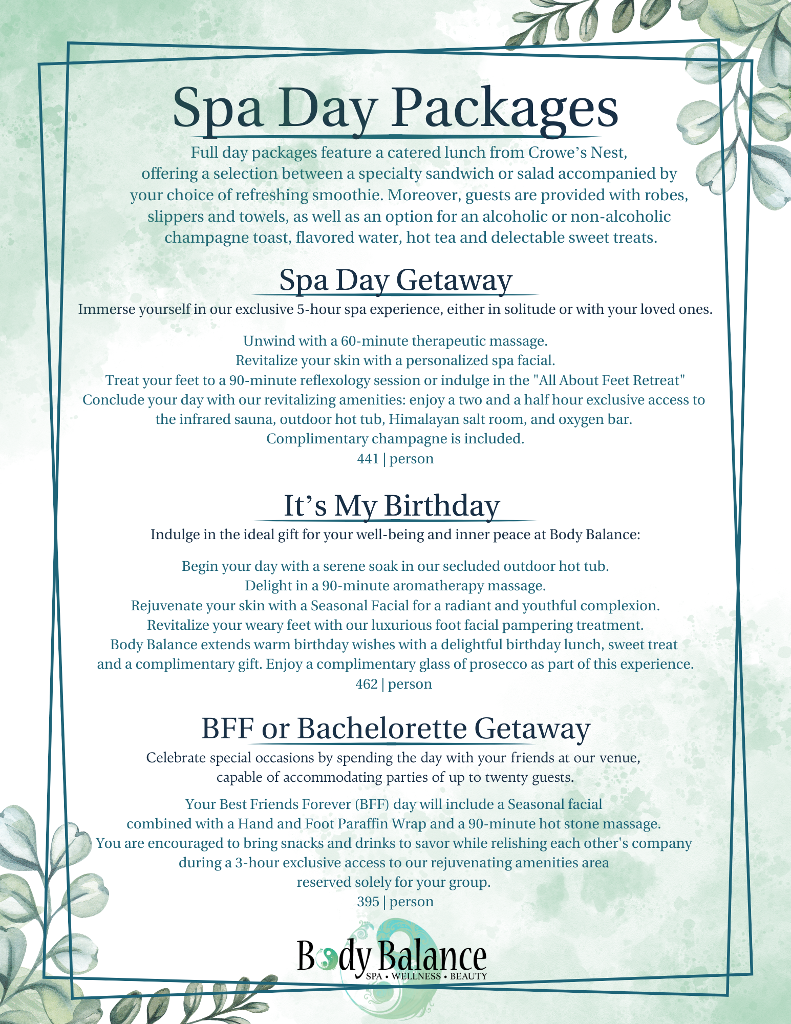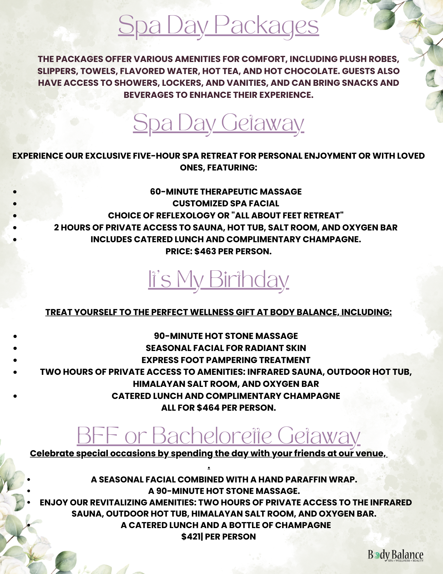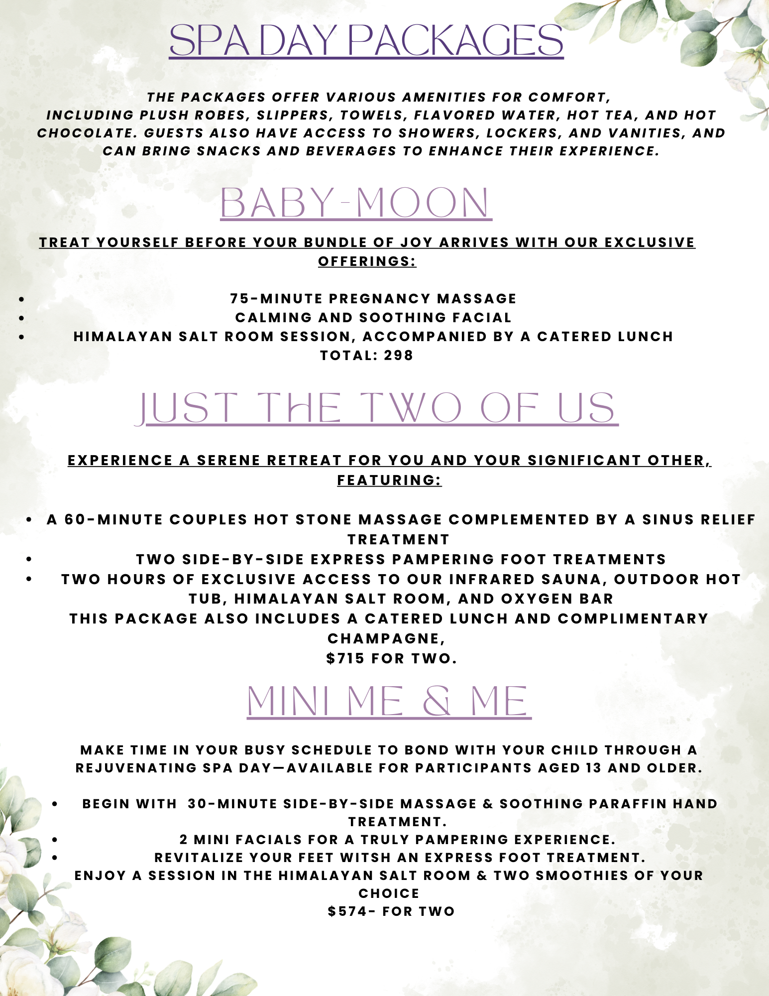 SPA DAY PACKAGES